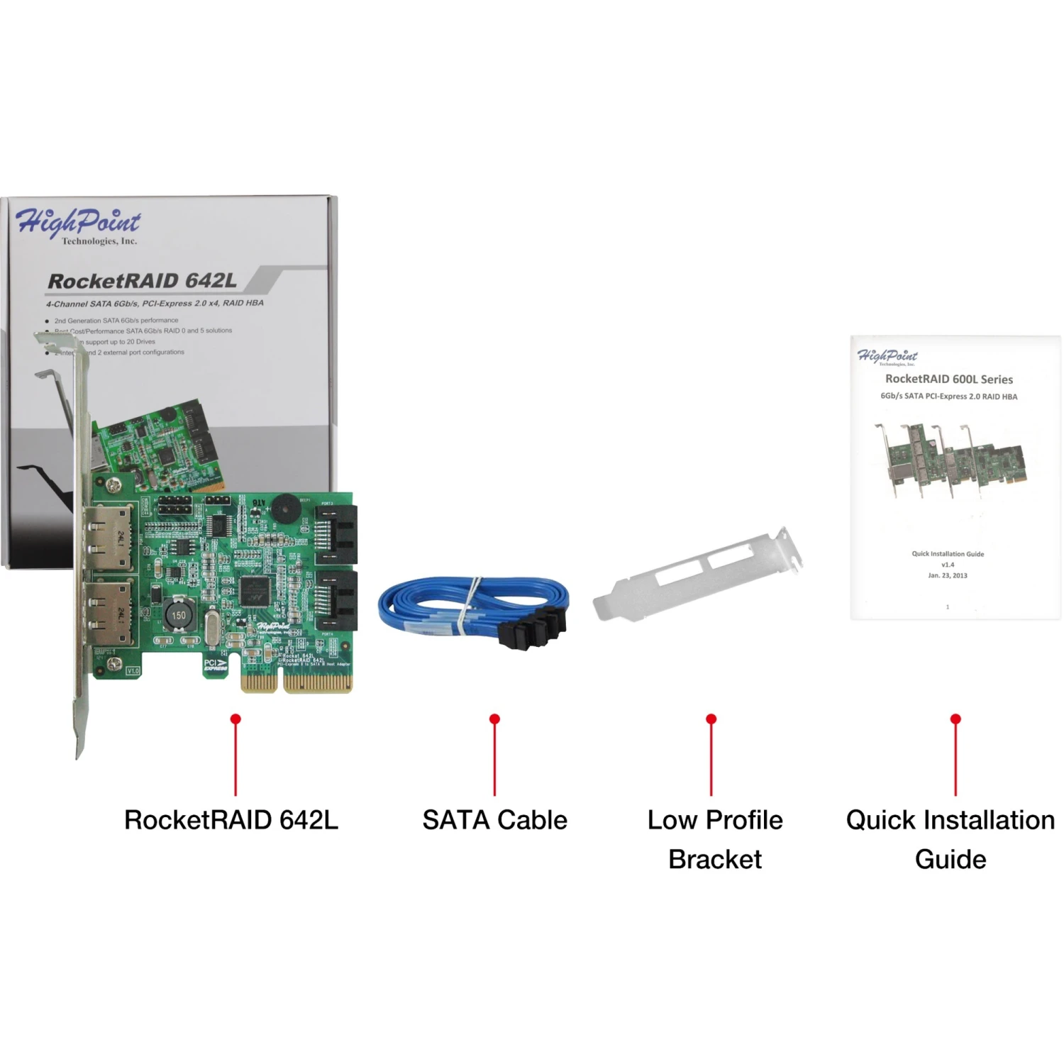 Die HBAs der RocketRAID 600-Serie sind die ideale 6-Gbit/s-SATA-Speicherlösung für jeden PC oder Mac. Der RocketRAID 642L ist mit 2 SATA und zwei eSATA-Anschlüssen ausgestattet und kann Punkt-zu-Punkt- und Port-Multiplier-basierte Speichergeräte verwalten. Das kompakte PCB-Design, der verfügbare Low-Profile-Formfaktor und Port-Steckverbinder nach Industriestandard machen jedes Upgrade-, Integrations- oder Erweiterungsprojekt für Speicher zum Kinderspiel.