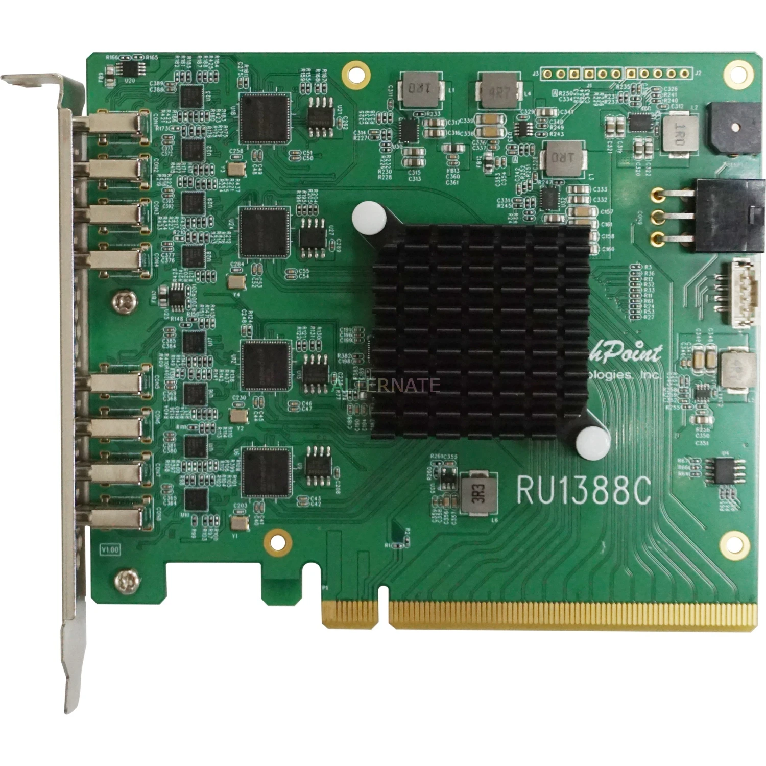 Der RocketU 1388C ist ein leistungsstarker USB-Host-Controller. Jeder der vier USB-Typ-A-Ports ist völlig unabhängig und wird von einem dedizierten 10 Gbit/s USB 3.2 Gen 2-Controller-Chip mit Strom versorgt, der von einer robusten PCIe 3.0 x16-Hostschnittstelle unterstützt wird. Diese einzigartige Host-Controller-Architektur stellt sicher, dass jedes gehostete USB-C-Gerät mit Spitzenleistung betrieben werden kann, ohne den Bus zu überlasten oder Systemressourcen zu belasten.