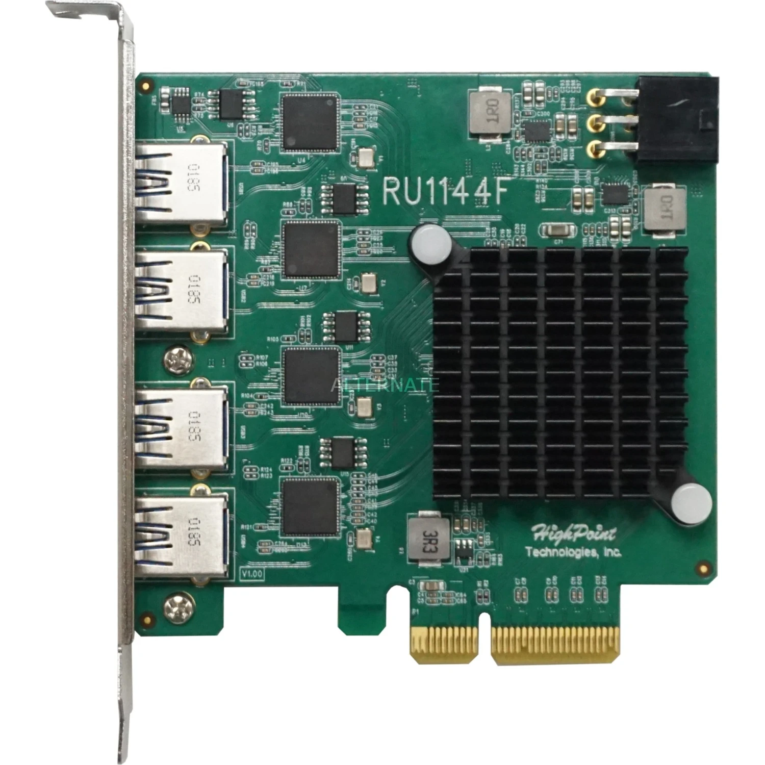 Die Highpoint RocketU 1144F ist eine USB 3.2 Gen 2 Erweiterungskarte für den PC. Diese Karte stellt vier zusätzliche USB 3.2 Gen 2 Anschlüsse zur Verfügung und wird über die PCIe-Schnittstelle integriert.