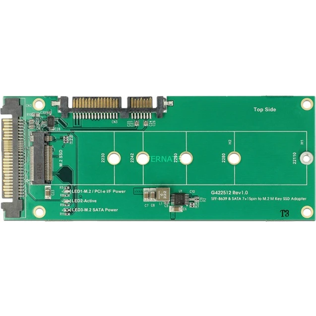 An diesen Delock Konverter kann eine M.2 SSD im 22110, 2280, 2260, 2242 und 2230 Format angeschlossen werden. Er ermöglicht die Nutzung einer M.2 SSD auf PCIe oder SATA Basis. Der Konverter kann intern über die SATA Schnittstelle in das System eingebunden werden, bei Nutzung einer SATA M.2 SSD, oder über die U.2 Schnittstelle, bei Nutzung einer PCIe M.2 SSD.