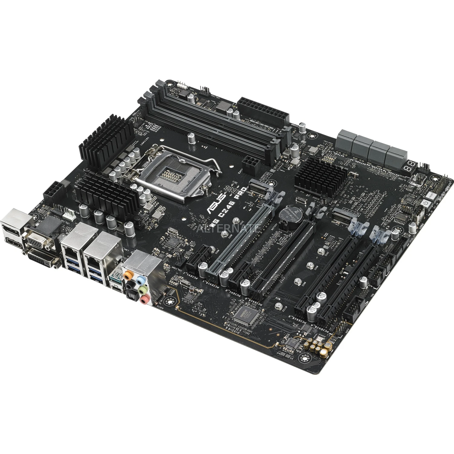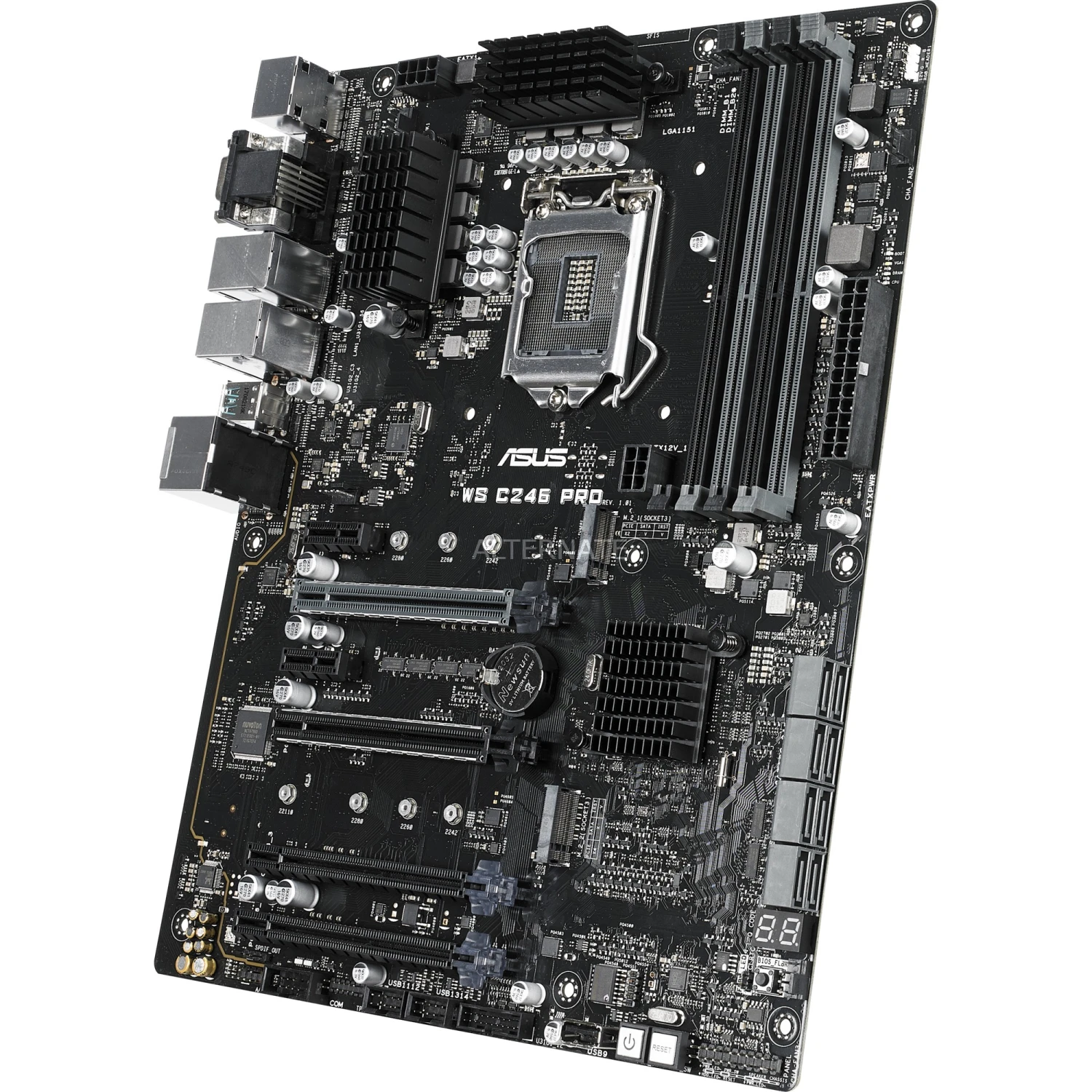 Das ASUS WS C246 PRO basiert auf dem Intel®-C246-Express-Chipsatz und unterstützt Intel®-Xeon®–, Intel® Core™ i7-, Intel® Core™ i5-, Intel® Core™ i3-Prozessoren, Intel® Pentium™- als auch Intel® Celeron™- für den Sockel 1151. Es besitzt vier DIMM-Slots und unterstützt bis zu 64 GB DDR4-Speicher im Dual-Channel-Betrieb. Zur weiteren Ausstattung des ASUS WS C246 PRO gehören ein PCIe-3.0-x16-Slot, ein PCIe-3.0-x8-Slot,zwei PCIe-3.0-x4-Slots, zwei PCIe-3.0-x1-Slots und eine CPU-äbhängige Grafiklösung. Außerdem verfügt das ASUS WS C246 PRO über 8-Kanal-HD-Sound, zwei Gigabit-LAN-Anschlüsse, acht SATA3-, zwei M.2- und eine Reihe an USB Schnittstellen.