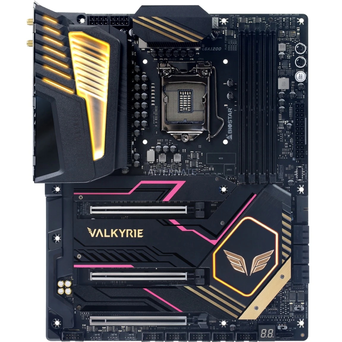 Das Biostar Z590 VALKYRIE Mainboard basiert auf dem Intel®-Z590-Chipsatz und unterstützt Intel®-Prozessoren für den Sockel 1200 der 10ten und 11ten Generation. Es verfügt über vier DDR4-DIMM-Slots im Dual-Channel-Betrieb für bis zu 128 GB Arbeitsspeicher. Zur weiteren Ausstattung des Biostar Z590 VALKYRIE gehören zwei PCIe-4.0-x16-Slots, ein PCIe-3.0-x16-Slot und ein PCIe-3.0-x1-Slot. Außerdem unterstützt das Biostar Z590 VALKYRIE die Intel® Optane™ Memory Technologie und verfügt über 8-Kanal-Sound, eine 2.5 Gigabit-LAN-Schnittstelle, sechs SATA3-Anschlüsse, drei M.2-Anschlüsse und eine Reihe an USB Schnittstellen.