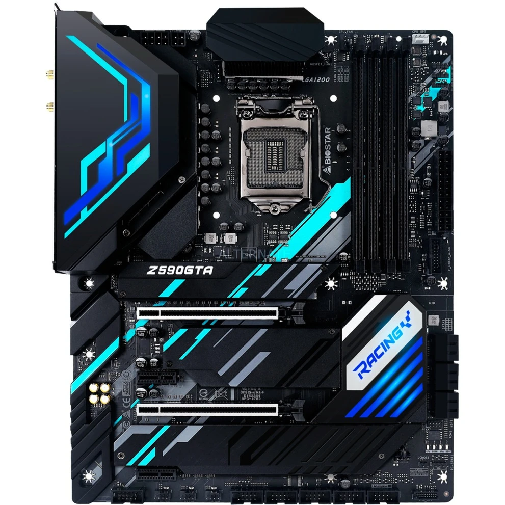 Das Biostar Z590GTA Mainboard basiert auf dem Intel®-Z590-Chipsatz und unterstützt Intel®-Prozessoren für den Sockel 1200 der 10ten und 11ten Generation. Es verfügt über vier DDR4-DIMM-Slots im Dual-Channel-Betrieb für bis zu 128 GB Arbeitsspeicher. Zur weiteren Ausstattung des Biostar Z590GTA gehören ein PCIe-4.0-x16-Slot, ein PCIe-3.0-x16-Slot und zwei PCIe-3.0-x1-Slots. Außerdem unterstützt das Biostar Z590GTA die Intel® Optane™ Memory Technologie und verfügt über 8-Kanal-Sound, eine 2.5 Gigabit-LAN-Schnittstelle, sechs SATA3-Anschlüsse, drei M.2-Anschlüsse und eine Reihe an USB Schnittstellen.