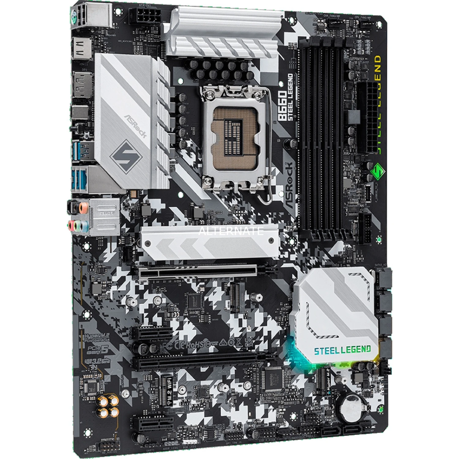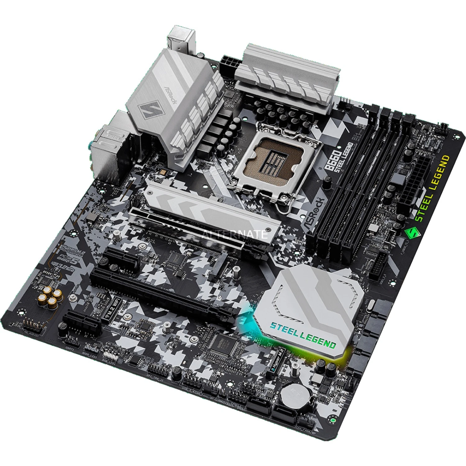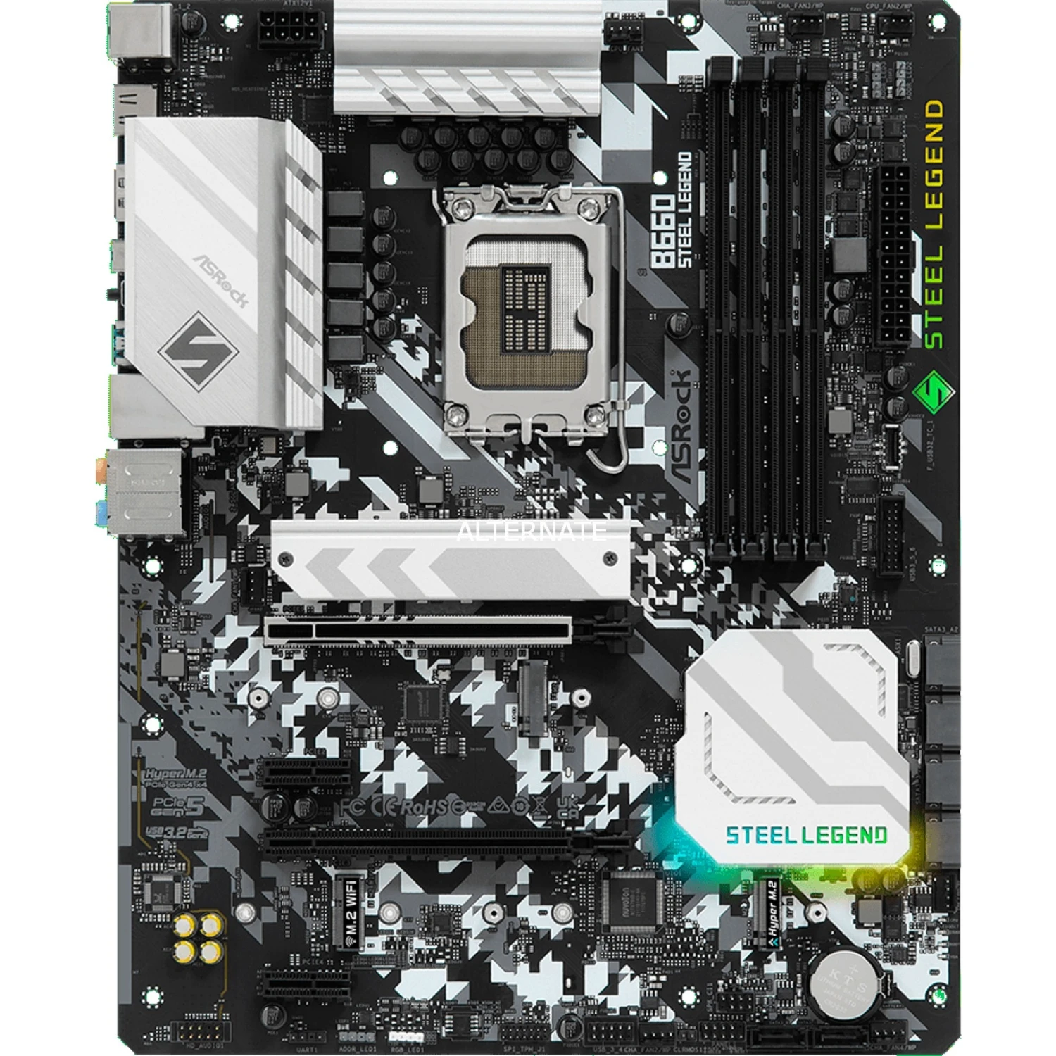 Das ASRock B660 Steel Legend Mainboard basiert auf dem Intel®-B660-Chipsatz und unterstützt Intel®-Prozessoren für den Sockel 1700 der 12ten Generation. Es verfügt über vier DDR4-DIMM-Slots im Dual-Channel-Betrieb für bis zu 128 GB Arbeitsspeicher. Zur weiteren Ausstattung des ASRock B660 Steel Legend gehören ein PCIe-5.0-x16-Slot, ein PCIe-4.0-x16-Slot und zwei PCIe-3.0-x1-Slots. Außerdem verfügt das ASRock B660 Steel Legend über 8-Kanal-Sound, eine 2,5 Gigabit-LAN-Schnittstelle, vier SATA3-Anschlüsse, zwei M.2-Anschlüsse und eine Reihe an USB Schnittstellen.