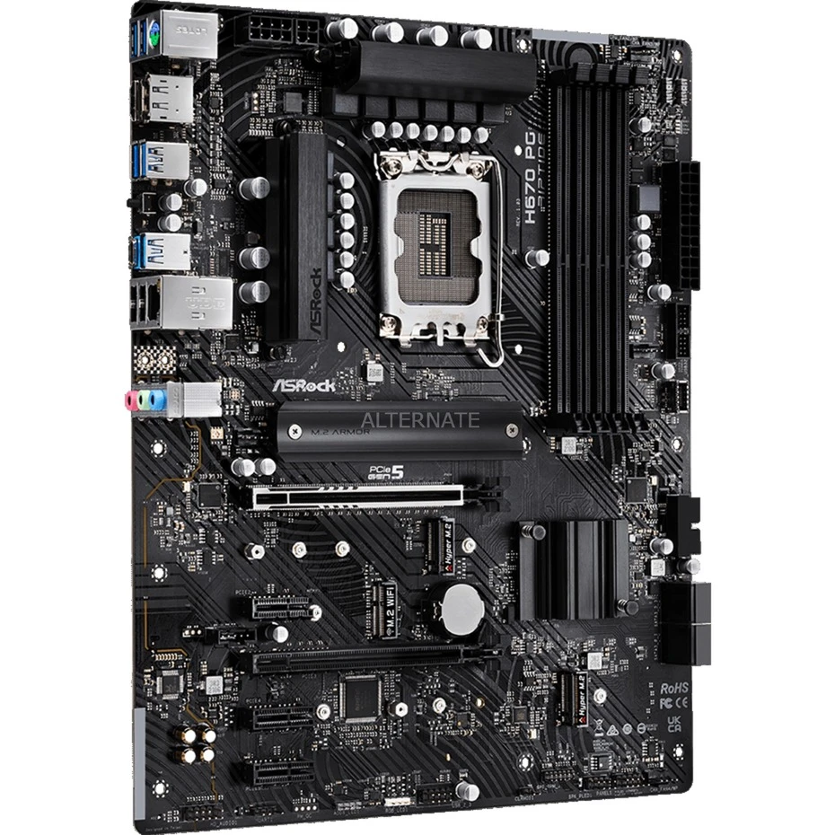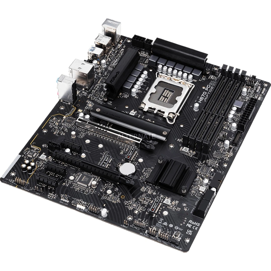 Das ASRock H670 PG Riptide Mainboard basiert auf dem Intel®-H670-Chipsatz und unterstützt Intel®-Prozessoren für den Sockel 1700 der 12ten Generation. Es verfügt über vier DDR4-DIMM-Slots im Dual-Channel-Betrieb für bis zu 128 GB Arbeitsspeicher. Zur weiteren Ausstattung des ASRock H670 PG Riptide gehören ein PCIe-5.0-x16-Slot, ein PCIe-4.0-x16-Slot und drei PCIe-3.0-x1-Slots. Außerdem verfügt das ASRock H670 PG Riptide über 8-Kanal-Sound, eine Gigabit-LAN-Schnittstelle, vier SATA3-Anschlüsse, zwei M.2-Anschlüsse und eine Reihe an USB Schnittstellen.
