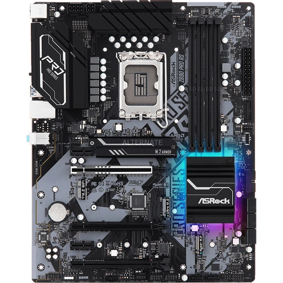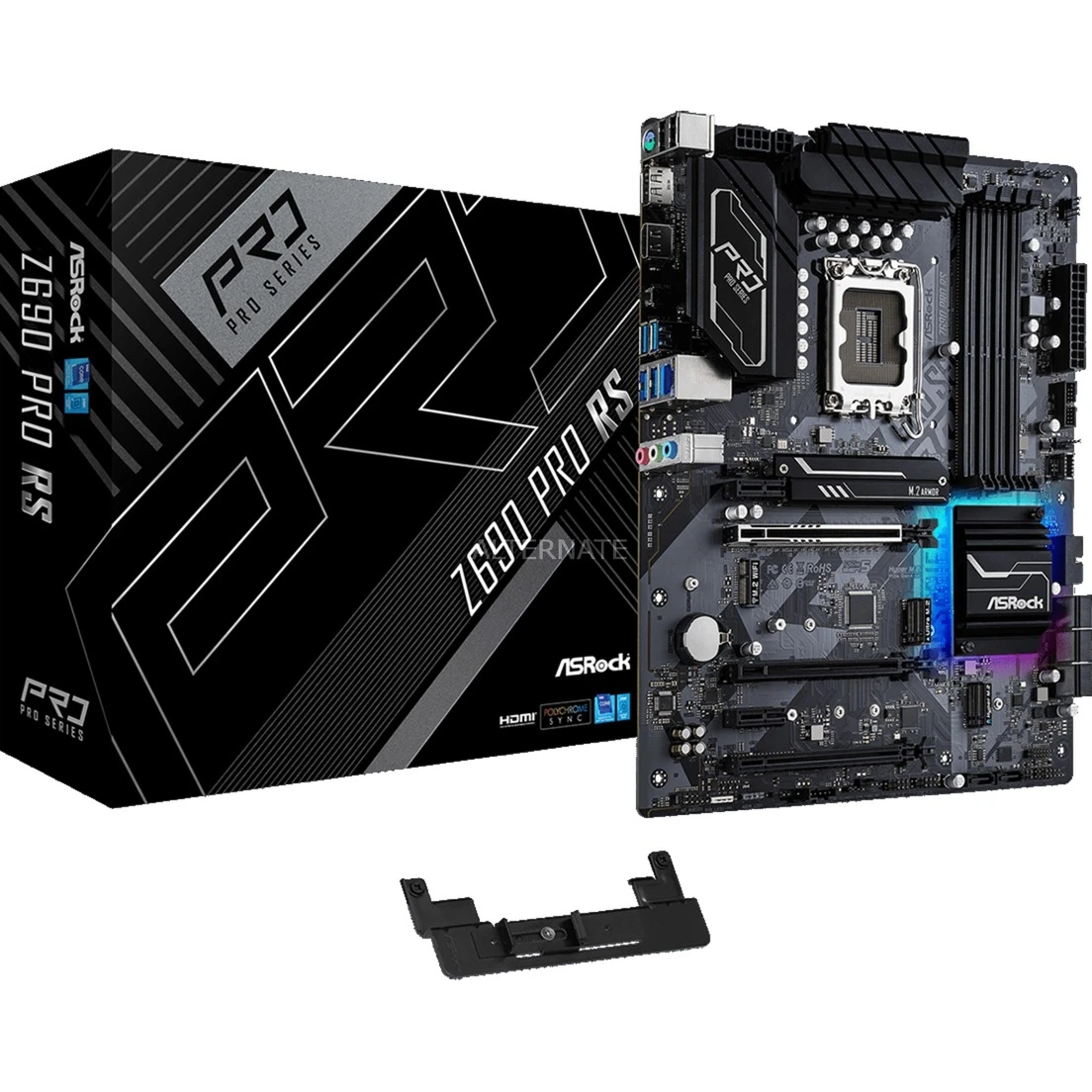 Das ASRock Z690 PRO RS Mainboard basiert auf dem Intel®-Z690-Chipsatz und unterstützt Intel®-Prozessoren für den Sockel 1700 der 12ten Generation. Es verfügt über vier DDR4-DIMM-Slots im Dual-Channel-Betrieb für bis zu 128 GB Arbeitsspeicher. Zur weiteren Ausstattung des ASRock Z690 PRO RS gehören drei PCIe-5.0-x16-Slots und zwei PCIe-3.0-x1-Slots. Außerdem verfügt das ASRock Z690 PRO RS über 8-Kanal-Sound, eine 2.5 Gigabit-LAN-Schnittstelle, acht SATA3-Anschlüsse, drei M.2-Anschlüsse und eine Reihe an USB Schnittstellen.