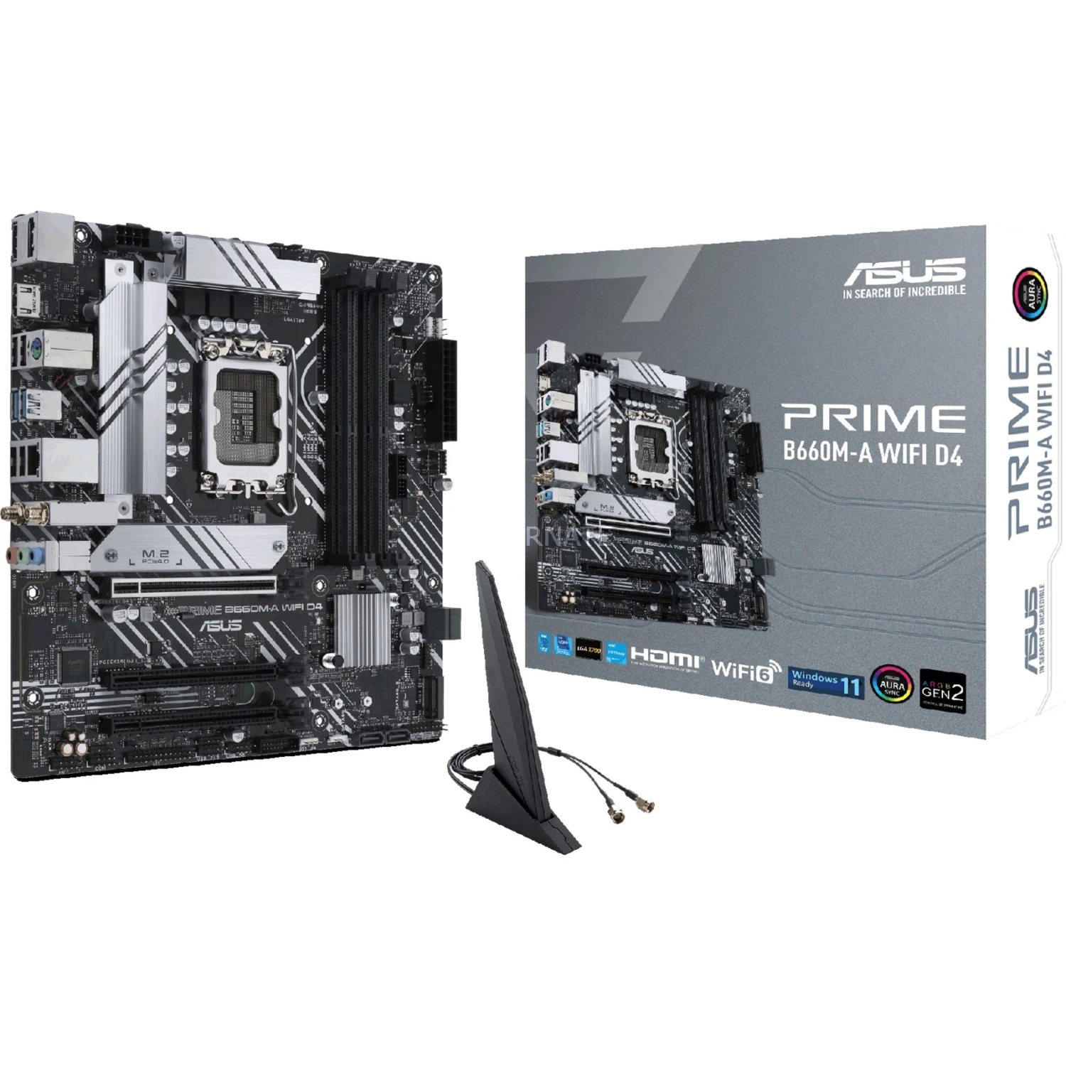 Das ASUS PRIME B660M-A WIFI D4 Mainboard basiert auf dem Intel®-B660-Chipsatz und unterstützt Intel®-Prozessoren für den Sockel 1700 der 12ten Generation. Es verfügt über vier DDR4-DIMM-Slots im Dual-Channel-Betrieb für bis zu 128 GB Arbeitsspeicher. Zur weiteren Ausstattung des ASUS PRIME B660M-A WIFI D4 gehören ein PCIe-4.0-x16-Slot und zwei PCIe-3.0-x16-Slots. Außerdem verfügt das ASUS PRIME B660M-A WIFI D4 über 8-Kanal-Sound, eine Gigabit-LAN-Schnittstelle, vier SATA3-Anschlüsse, zwei M.2-Anschlüsse, WiFi 6, Bluetooth 5.2 und eine Reihe an USB Schnittstellen.
