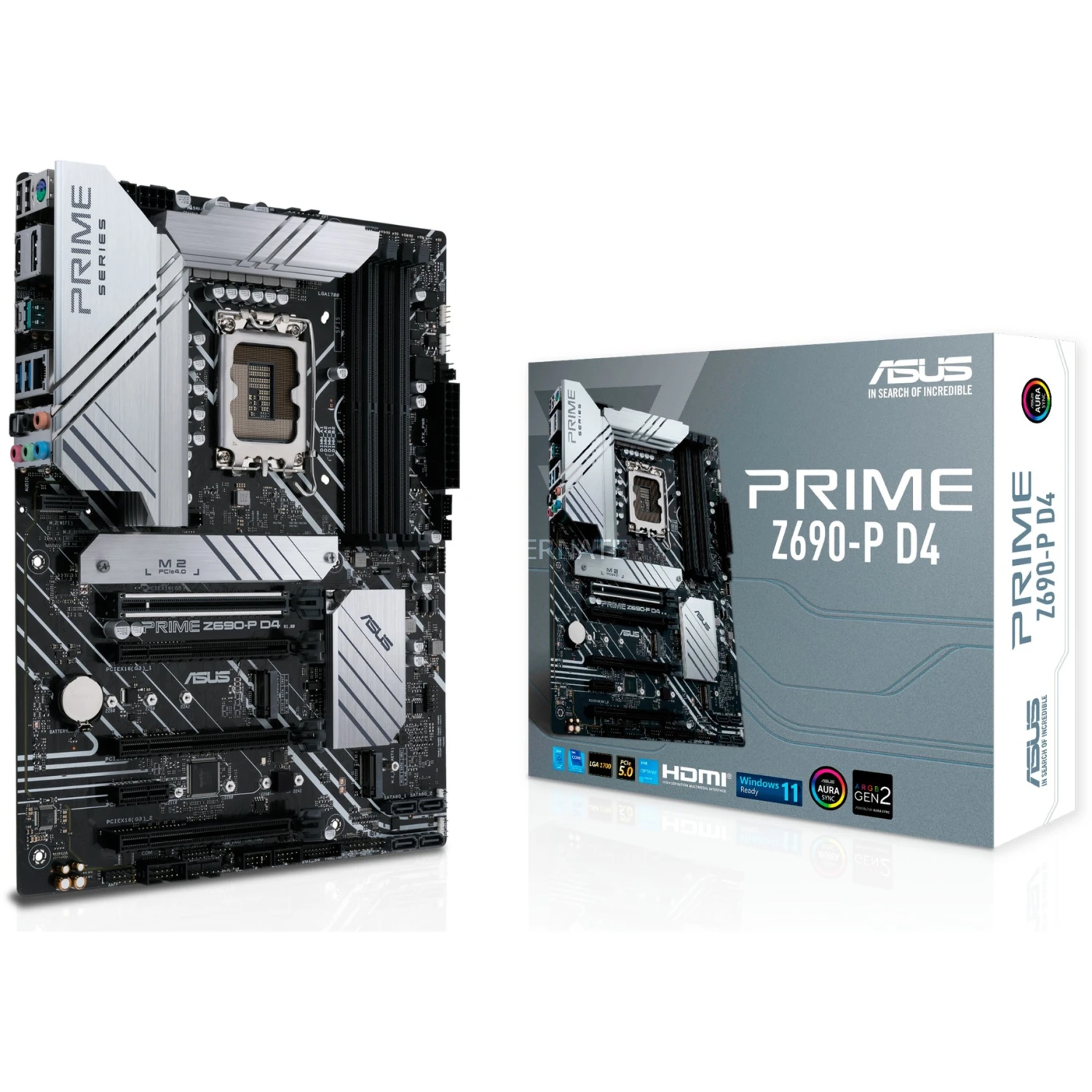 Das ASUS PRIME Z690-P DDR4 Mainboard basiert auf dem Intel®-Z690-Chipsatz und unterstützt Intel®-Prozessoren für den Sockel 1700 der 12ten Generation. Es verfügt über vier DDR4-DIMM-Slots im Dual-Channel-Betrieb für bis zu 128 GB Arbeitsspeicher. Zur weiteren Ausstattung des ASUS PRIME Z690-P DDR4 gehören ein PCIe-5.0-x16-Slot, ein PCIe-4.0-x16-Slot, zwei PCIe-3.0-x16-Slots und ein PCIe-3.0-x1-Slot. Außerdem verfügt das ASUS PRIME Z690-P DDR4 über 8-Kanal-Sound, eine 2,5 Gigabit-LAN-Schnittstelle, vier SATA3-Anschlüsse, drei M.2-Anschlüsse und eine Reihe an USB Schnittstellen.