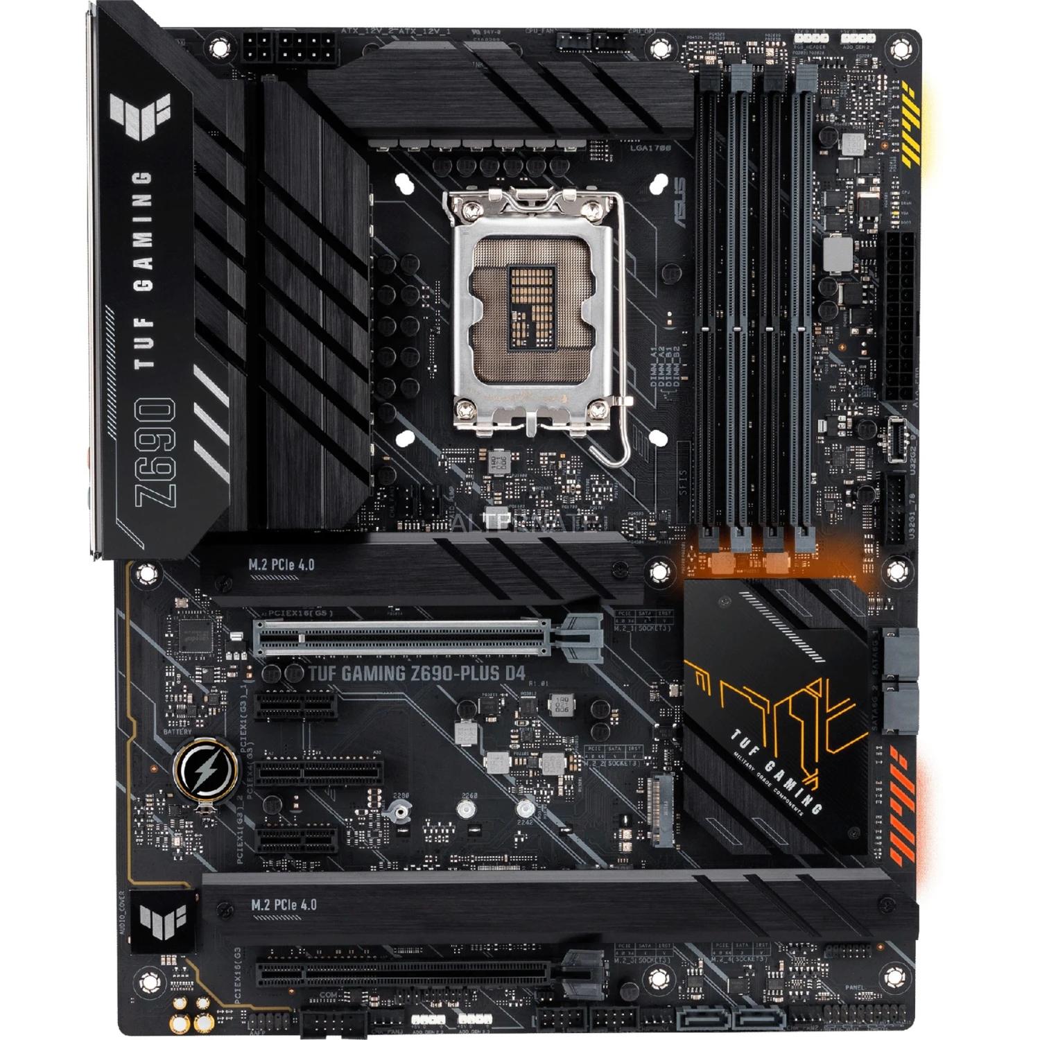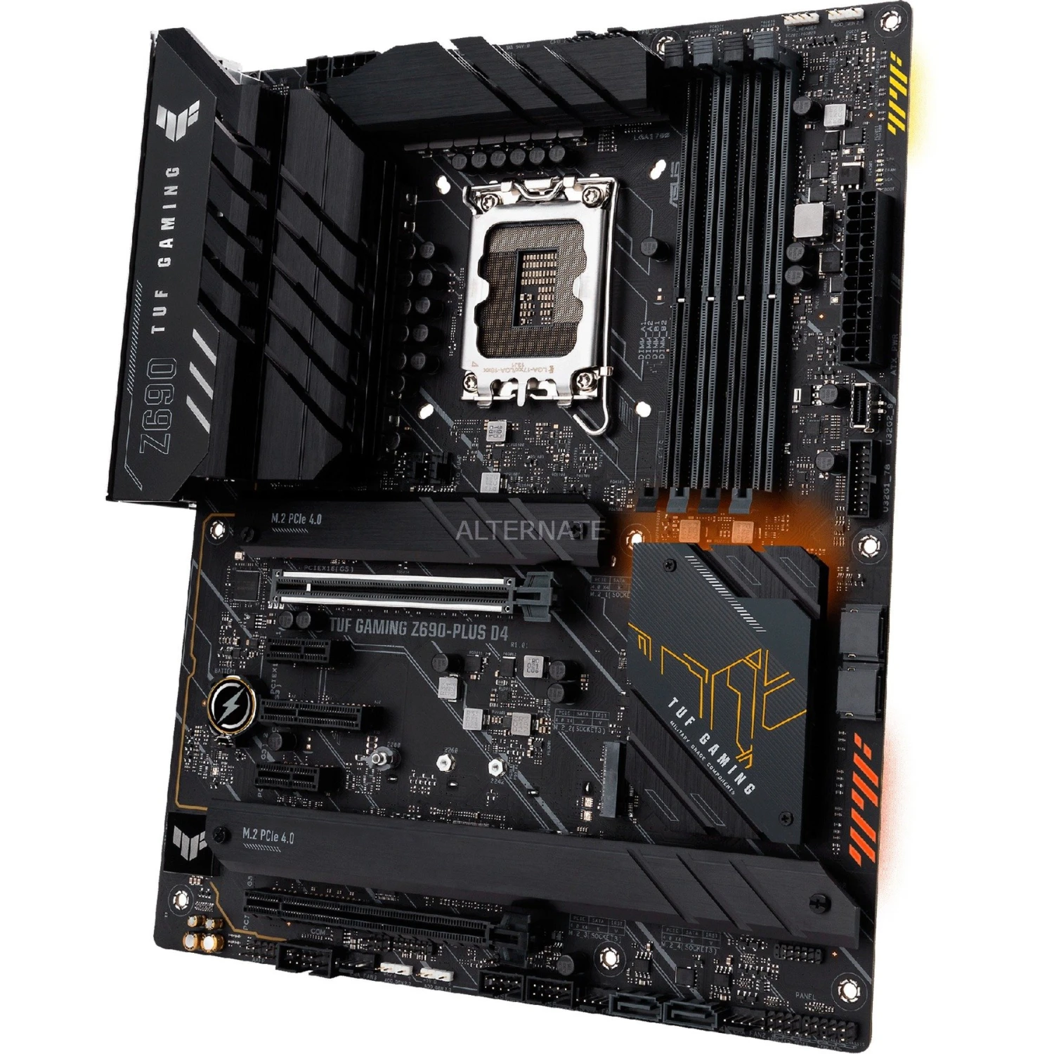 Das ASUS TUF GAMING Z690-PLUS DDR4 Mainboard basiert auf dem Intel®-Z690-Chipsatz und unterstützt Intel®-Prozessoren für den Sockel 1700 der 12ten Generation. Es verfügt über vier DDR4-DIMM-Slots im Dual-Channel-Betrieb für bis zu 128 GB Arbeitsspeicher. Zur weiteren Ausstattung des ASUS TUF GAMING Z690-PLUS DDR4 gehören ein PCIe-5.0-x16-Slot, ein PCIe-3.0-x16-Slot, ein PCIe-3.0-x4-Slot und zwei PCIe-3.0-x1-Slots. Außerdem verfügt das ASUS TUF GAMING Z690-PLUS DDR4 über 8-Kanal-Sound, eine 2,5 Gigabit-LAN-Schnittstelle, vier SATA3-Anschlüsse, vier M.2-Anschlüsse und eine Reihe an USB Schnittstellen.