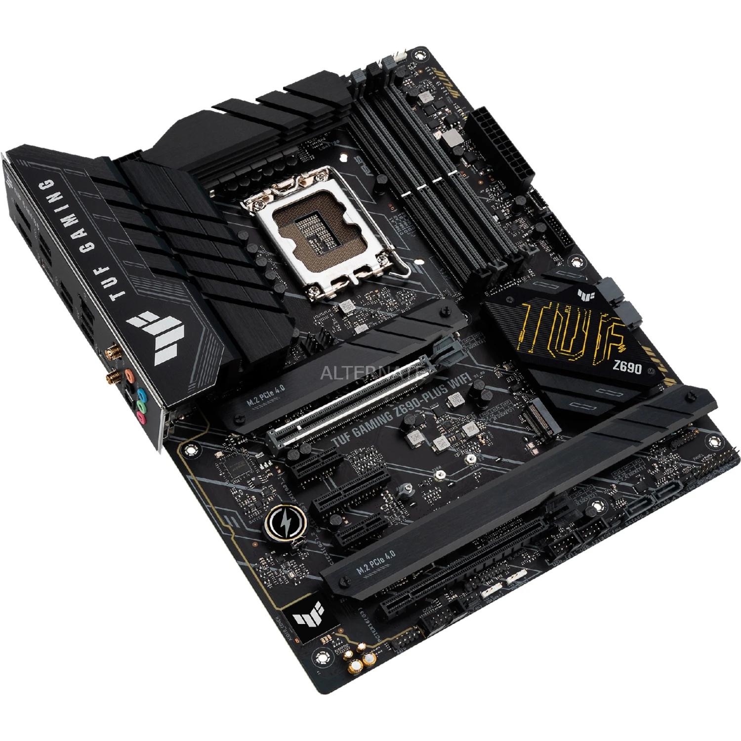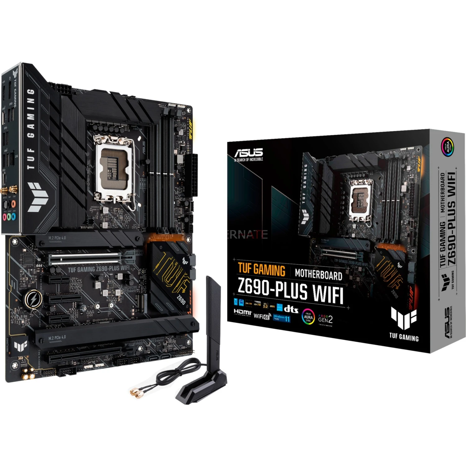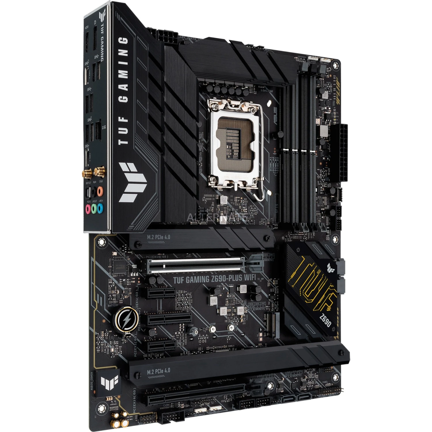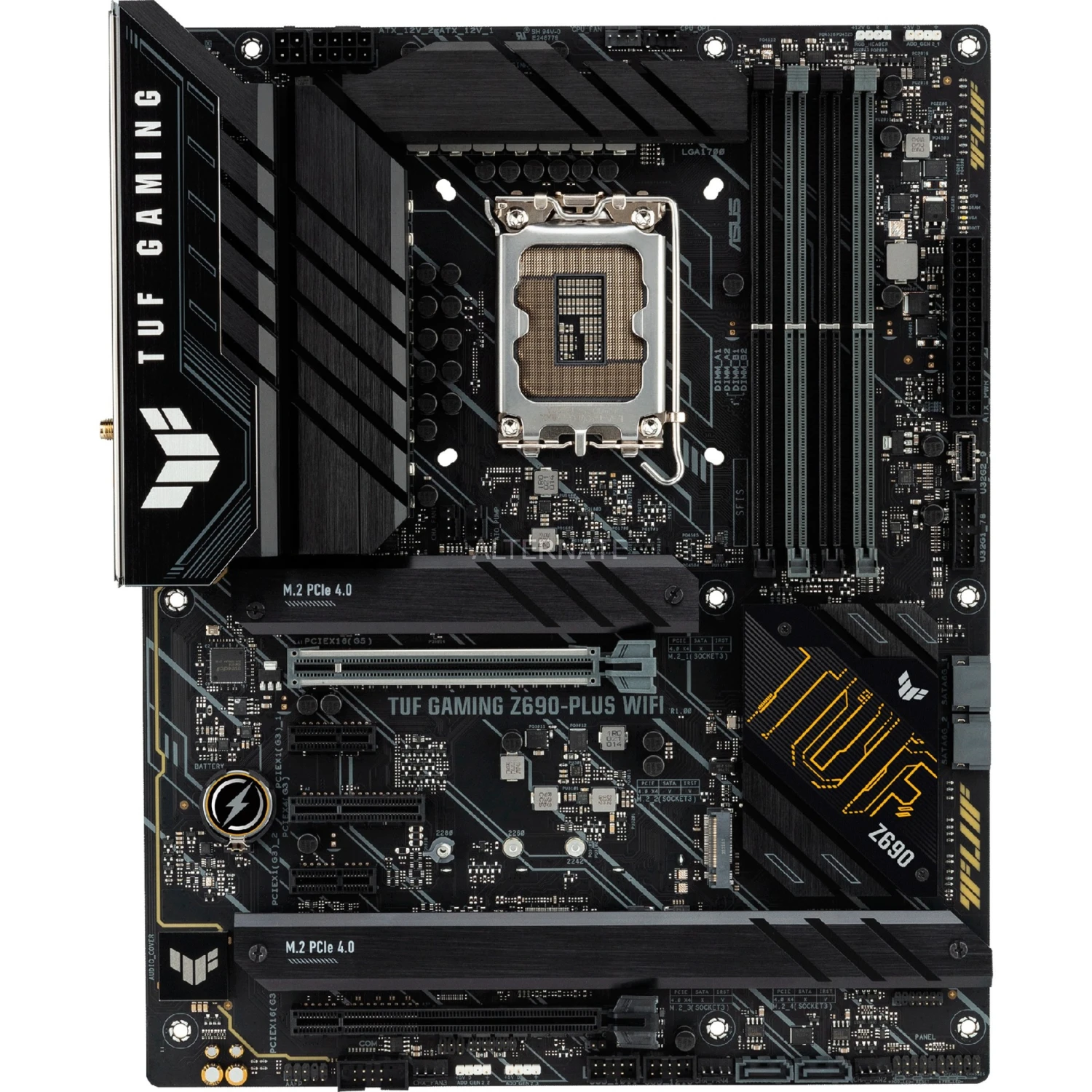 Das ASUS TUF GAMING Z690-PLUS WIFI Mainboard basiert auf dem Intel®-Z690-Chipsatz und unterstützt Intel®-Prozessoren für den Sockel 1700 der 12ten Generation. Es verfügt über vier DDR5-DIMM-Slots im Dual-Channel-Betrieb für bis zu 128 GB Arbeitsspeicher. Zur weiteren Ausstattung des ASUS TUF GAMING Z690-PLUS WIFI gehören ein PCIe-5.0-x16-Slot, ein PCIe-3.0-x16-Slot, ein PCIe-3.0-x4-Slot und zwei PCIe-3.0-x1-Slots. Außerdem verfügt das ASUS TUF GAMING Z690-PLUS WIFI über 8-Kanal-Sound, eine 2,5 Gigabit-LAN-Schnittstelle, vier SATA3-Anschlüsse, vier M.2-Anschlüsse, WiFi 6 und Bluetooth 5.2 und eine Reihe an USB Schnittstellen.