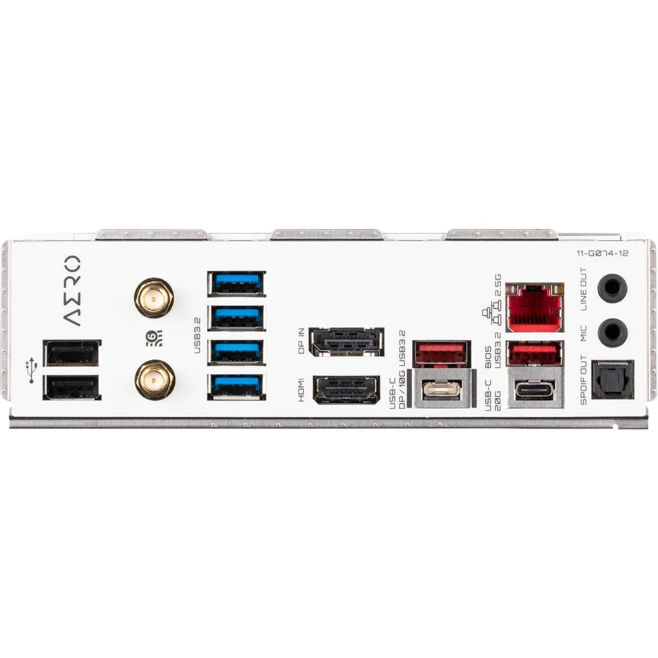 Das GIGABYTE Z790 AERO G Mainboard basiert auf dem Intel®-Z790-Chipsatz und unterstützt Intel®-Prozessoren für den Sockel 1700 der 13ten und 12ten Generation. Es verfügt über vier DDR5-DIMM-Slots im Dual-Channel-Betrieb für bis zu 128 GB Arbeitsspeicher. Zur weiteren Ausstattung des GIGABYTE Z790 AERO G gehören ein PCIe-5.0-x16-Slot und zwei PCIe-3.0-x16-Slots. Außerdem verfügt das GIGABYTE Z790 AERO G über 8-Kanal-Sound, eine 2,5 Gigabit-LAN-Schnittstelle, vier SATA3-Anschlüsse, vier M.2-Anschlüsse, WiFi 6E, Bluetooth 5.2 und eine Reihe an USB Schnittstellen.