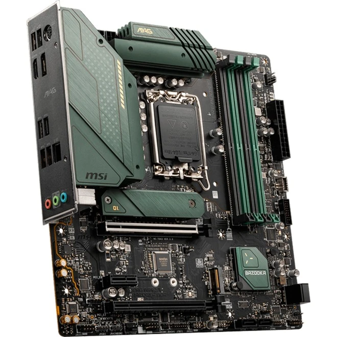 Das MSI MAG B660M BAZOOKA DDR4 Mainboard basiert auf dem Intel®-B660-Chipsatz und unterstützt Intel®-Prozessoren für den Sockel 1700 der 12ten Generation. Es verfügt über vier DDR4-DIMM-Slots im Dual-Channel-Betrieb für bis zu 128 GB Arbeitsspeicher. Zur weiteren Ausstattung des MSI MAG B660M BAZOOKA DDR4 gehören ein PCIe-4.0-x16-Slot, ein PCIe-3.0-x16-Slot und ein PCIe-3.0-x1-Slot. Außerdem verfügt das MSI MAG B660M BAZOOKA DDR4 über 8-Kanal-Sound, eine 2,5 Gigabit-LAN-Schnittstelle, vier SATA3-Anschlüsse, zwei M.2-Anschlüsse und eine Reihe an USB Schnittstellen.