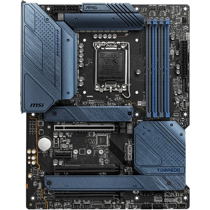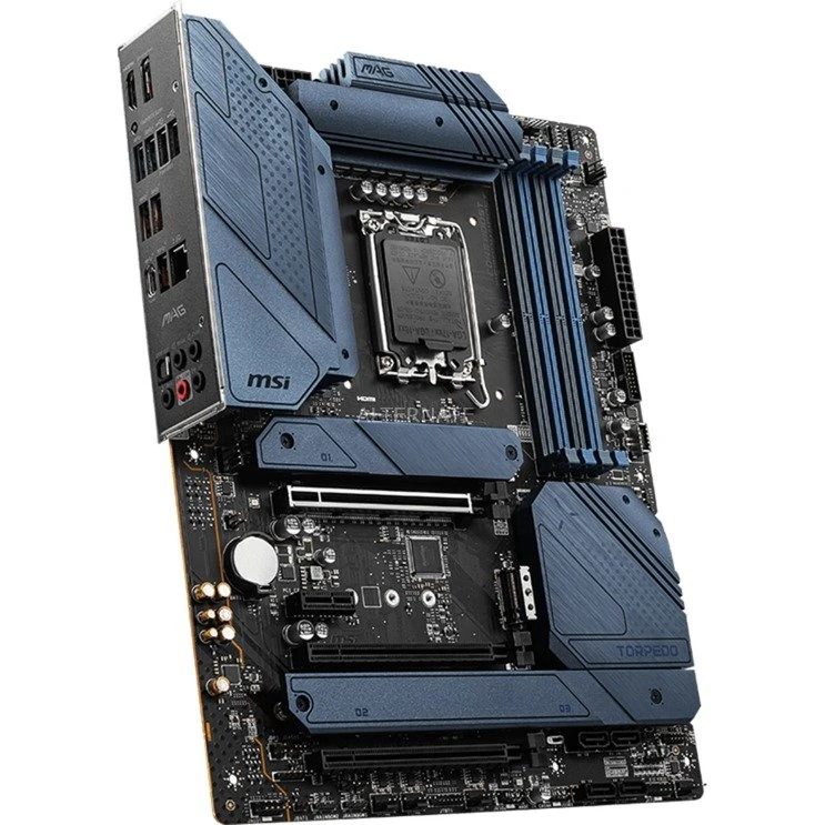 Das MSI MAG Z690 TORPEDO Mainboard basiert auf dem Intel®-Z690-Chipsatz und unterstützt Intel®-Prozessoren für den Sockel 1700 der 12ten Generation. Es verfügt über vier DDR5-DIMM-Slots im Dual-Channel-Betrieb für bis zu 128 GB Arbeitsspeicher. Zur weiteren Ausstattung des MSI MAG Z690 TORPEDO gehören zwei PCIe-5.0-x16-Slots und ein PCIe-3.0-x16-Slot. Außerdem verfügt das MSI MAG Z690 TORPEDO über 8-Kanal-Sound, eine 2,5 Gigabit-LAN-Schnittstelle, sechs SATA3-Anschlüsse, vier M.2-Anschlüsse und eine Reihe an USB Schnittstellen.