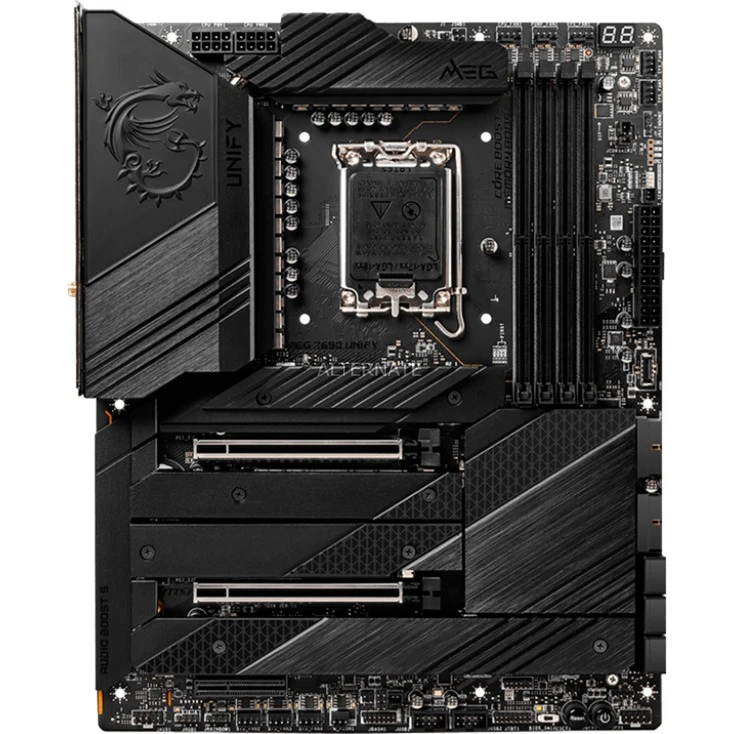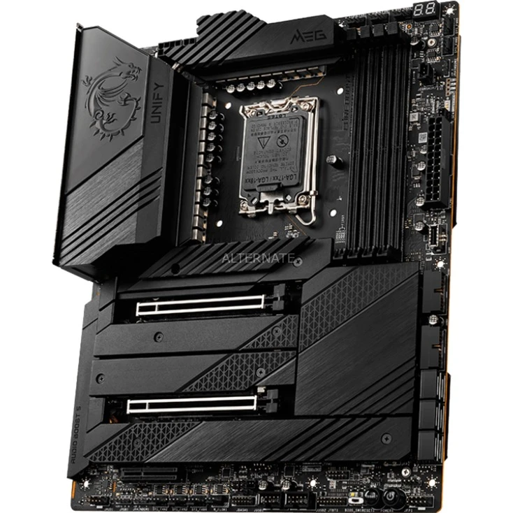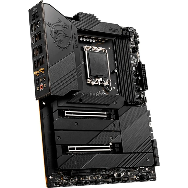 Das MSI MEG Z690 UNIFY Mainboard basiert auf dem Intel®-Z690-Chipsatz und unterstützt Intel®-Prozessoren für den Sockel 1700 der 12ten Generation. Es verfügt über vier DDR5-DIMM-Slots im Dual-Channel-Betrieb für bis zu 128 GB Arbeitsspeicher. Zur weiteren Ausstattung des MSI MEG Z690 UNIFY gehören zwei PCIe-5.0-x16-Slots und ein PCIe-3.0-x4-Slot. Außerdem verfügt das MSI MEG Z690 UNIFY über 8-Kanal-Sound, eine 2,5 Gigabit-LAN-Schnittstelle, sechs SATA3-Anschlüsse, vier M.2-Anschlüsse, WiFi 6E, Bluetooth 5.2 und eine Reihe an USB Schnittstellen.