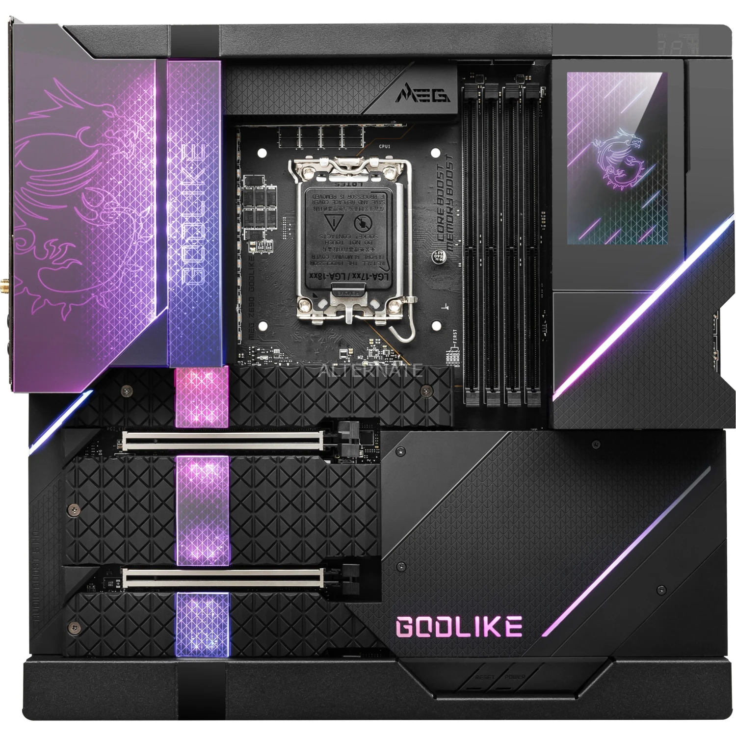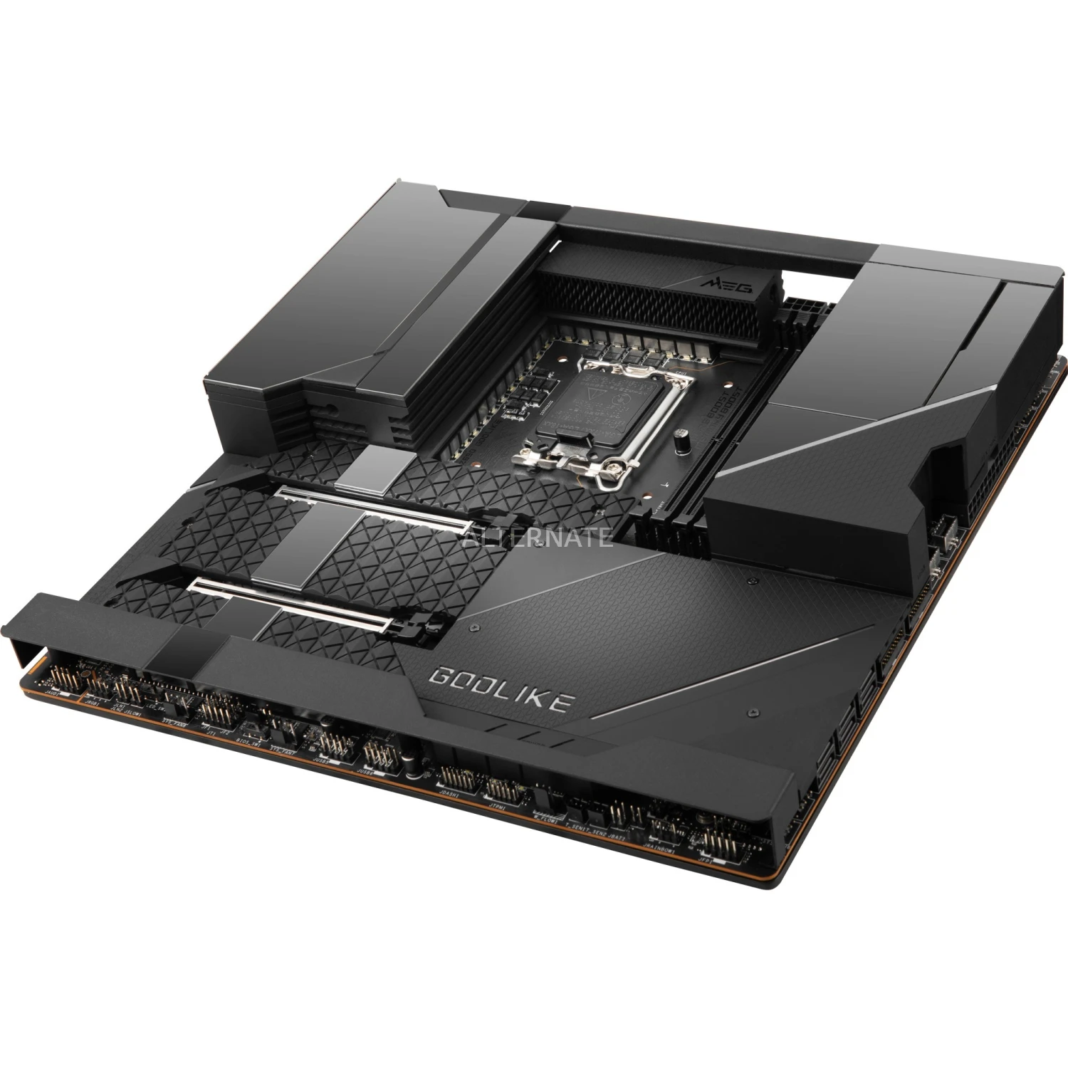 Das MSI MPG Z690 GODLIKE Mainboard basiert auf dem Intel®-Z690-Chipsatz und unterstützt Intel®-Prozessoren für den Sockel 1700 der 12ten Generation. Es verfügt über vier DDR5-DIMM-Slots im Dual-Channel-Betrieb für bis zu 128 GB Arbeitsspeicher. Zur weiteren Ausstattung des MSI MPG Z690 GODLIKE gehören zwei PCIe-5.0-x16-Slots und ein PCIe-4.0-x16-Slot. Außerdem verfügt das MSI MPG Z690 GODLIKE über 8-Kanal-Sound, eine 2,5 Gigabit-LAN-Schnittstelle, sechs SATA3-Anschlüsse, sechs M.2-Anschlüsse, WiFi 6E, Bluetooth 5.2 und eine Reihe an USB Schnittstellen.
