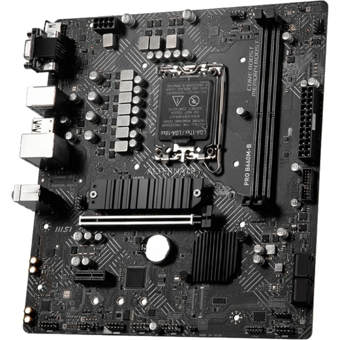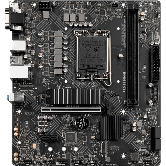 Das MSI PRO B660M-B DDR4 Mainboard basiert auf dem Intel®-B660-Chipsatz und unterstützt Intel®-Prozessoren für den Sockel 1700 der 12ten Generation. Es verfügt über zwei DDR4-DIMM-Slots im Dual-Channel-Betrieb für bis zu 64 GB Arbeitsspeicher. Zur weiteren Ausstattung des MSI PRO B660M-B DDR4 gehören ein PCIe-4.0-x16-Slot und ein PCIe-3.0-x1-Slot. Außerdem verfügt das MSI PRO B660M-B DDR4 über 8-Kanal-Sound, eine 2,5 Gigabit-LAN-Schnittstelle, vier SATA3-Anschlüsse, einen M.2-Anschlu@ss und eine Reihe an USB Schnittstellen.