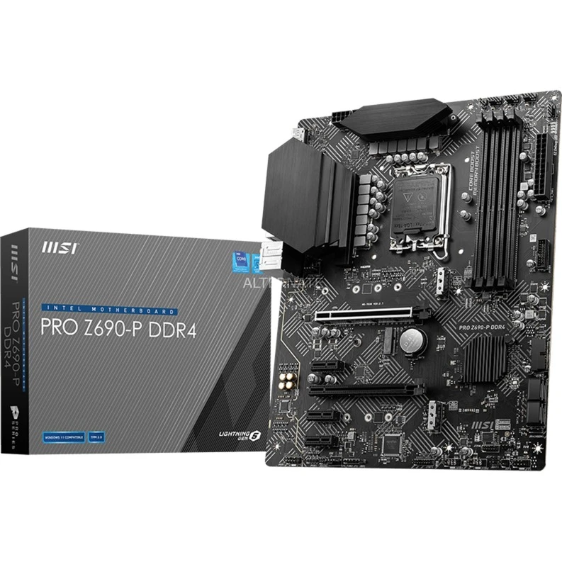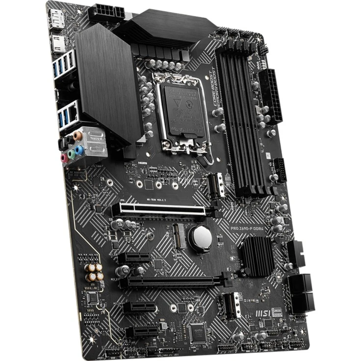 Das MSI PRO Z690-P DDR4 Mainboard basiert auf dem Intel®-Z690-Chipsatz und unterstützt Intel®-Prozessoren für den Sockel 1700 der 12ten Generation. Es verfügt über vier DDR4-DIMM-Slots im Dual-Channel-Betrieb für bis zu 128 GB Arbeitsspeicher. Zur weiteren Ausstattung des MSI PRO Z690-P DDR4 gehören ein PCIe-5.0-x16-Slot, ein PCIe-3.0-x16-Slot und drei PCIe-3.0-x1-Slots. Außerdem verfügt das MSI PRO Z690-P DDR4 über 8-Kanal-Sound, eine 2,5 Gigabit-LAN-Schnittstelle, vier SATA3-Anschlüsse, zwei M.2-Anschlüsse und eine Reihe an USB Schnittstellen.