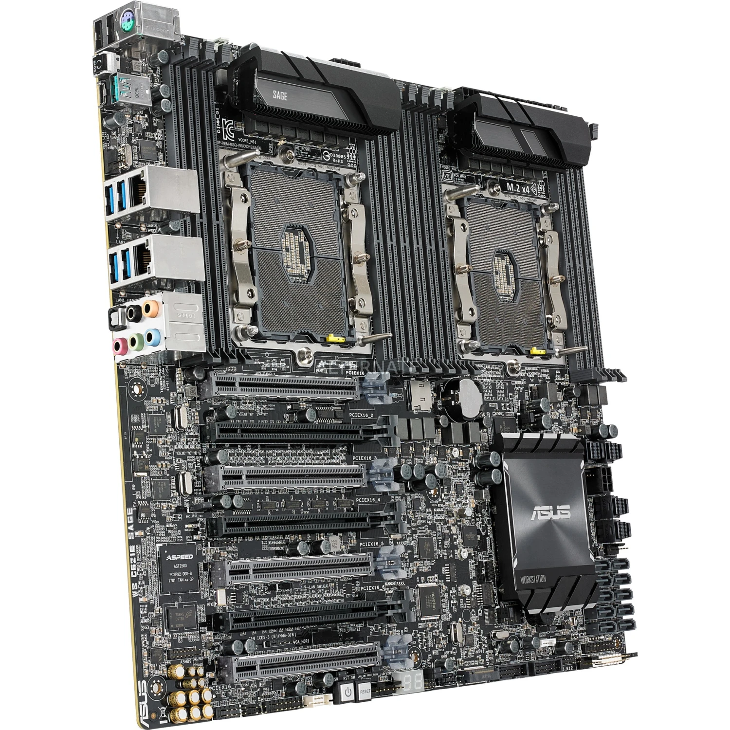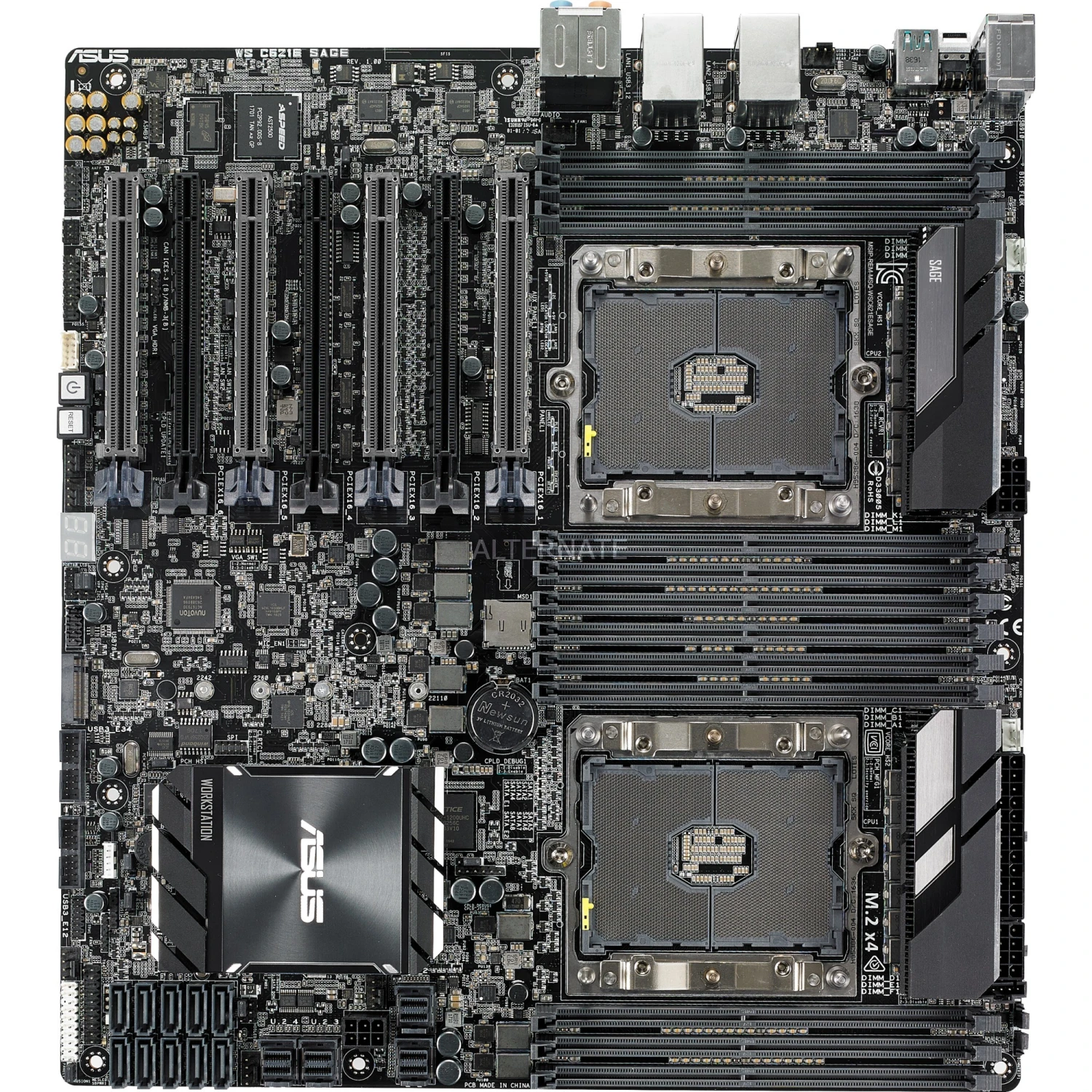 Das ASUS Server Board WS C621E SAGE unterstützt zwei Intel®-Xeon®-Prozessor der Bronze/Silver/Gold und Platinum-Serie und bis zu 768 GB DDR4-Speicher auf 12 Speicherbänken. Zur weiteren Ausstattung des ASUS WS C621E SAGE gehören drei PCIe-3.0-x16-Slots und vier PCIe-3.0-x8-Slots und zwei Gigabit-Netzwerkanschlüsse. Zum Anschluss von Massenspeichern stehen zehn RAID-fähige SATA3-Schnittstellen, vier U,2-Schnittstellen und eine M.2-Schnittstelle zur Verfügung.