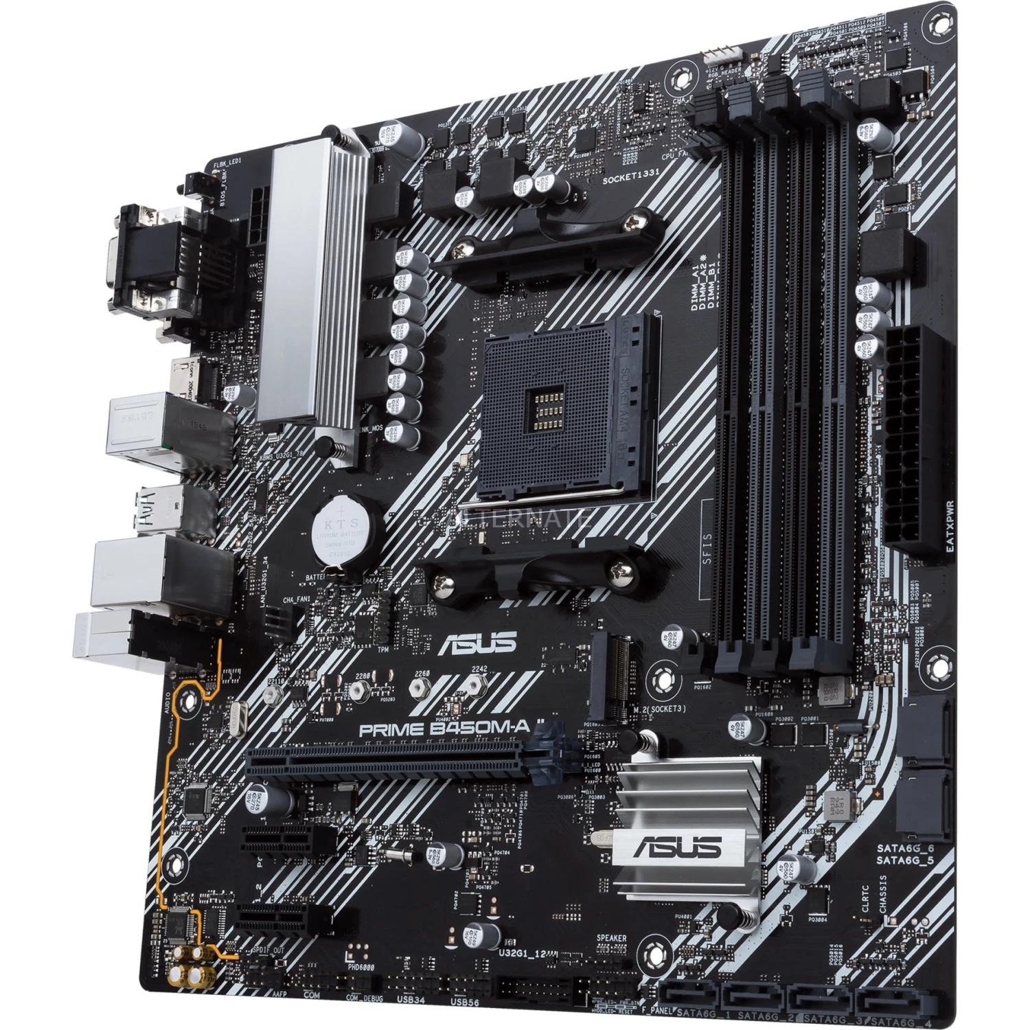 Das ASUS PRIME B450M-A II basiert auf dem AMD-B450-Chipsatz und unterstützt AMD-Prozessoren für den Sockel AM4. Es verfügt über vier DDR4-Slots für bis zu 128 GB Arbeitsspeicher. Zur weiteren Ausstattung des ASUS PRIME B450M-A II gehört eine CPU-abhängige Grafiklösung, ein PCIe-3.0-x16-Slot und zwei PCIe-2.0-x1-Slots. Außerdem verfügt das ASUS PRIME B450M-A II über 8-Kanal-Sound, eine Gigabit-LAN-Schnittstelle sowie sechs SATA3-, einen M.2-Anschluss und eine Reihe an USB Schnittstellen.
