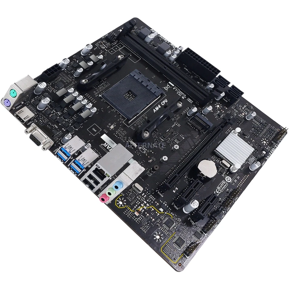 Das Biostar A32M2 basiert auf dem AMD-A320-Chipsatz und unterstützt AMD-Prozessoren für den Sockel AM4. Es verfügt über zwei DDR4-Slots für bis zu 32 GB Arbeitsspeicher. Zur weiteren Ausstattung des A32M2 gehört eine CPU-abhängige Grafiklösung, ein PCIe-3.0-x16-Slot und zwei PCIe-2.0-x1-Slots. Außerdem verfügt das A32M2 über 8-Kanal-Sound, eine Gigabit-LAN-Schnittstelle sowie vier SATA3- und eine Reihe an USB Schnittstellen.