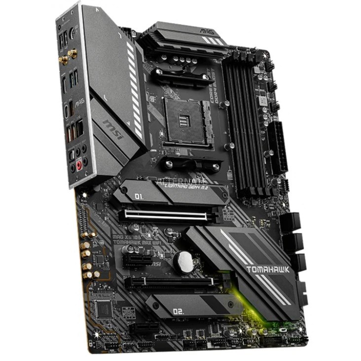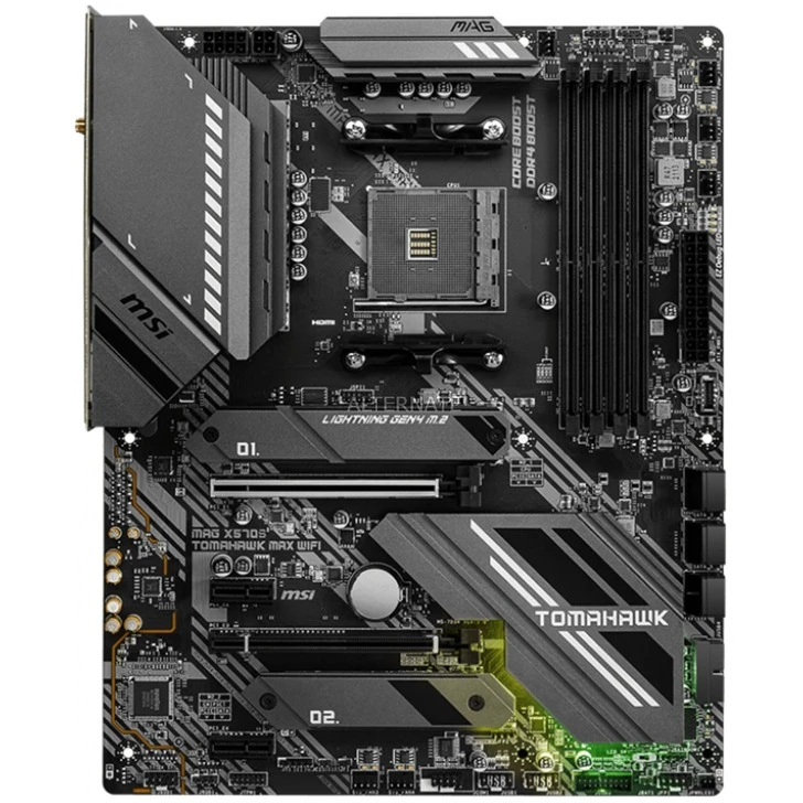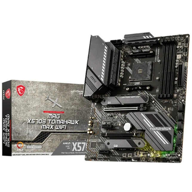 Das MSI MAG X570S TOMAHAWK MAX WIFI basiert auf dem AMD-X570-Chipsatz und unterstützt AMD-Prozessoren für den Sockel AM4. Es verfügt über vier DDR4-Slots für bis zu 128 GB Arbeitsspeicher. Zur weiteren Ausstattung des MSI MAG X570S TOMAHAWK MAX WIFI gehören ein PCIe-4.0-x16-Slot, ein PCIe-3.0-x4-Slot und zwei PCIe-4.0-x1-Slots. Außerdem verfügt das MSI MAG X570S TOMAHAWK MAX WIFI über 8-Kanal-Sound, eine 2,5-Gigabit-LAN-Schnittstelle, sechs SATA3-Anschlüsse, zwei M.2-Anschlüsse, Wi-Fi 6E, Bluetooth 5.2 und eine Reihe an USB Schnittstellen.