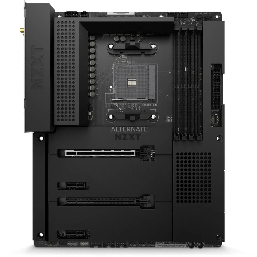 Das NZXT N7 B550 Matte Black basiert auf dem AMD-B550-Chipsatz und unterstützt AMD-Prozessoren für den Sockel AM4. Es verfügt über vier DDR4-Slots für bis zu 128 GB Arbeitsspeicher. Zur weiteren Ausstattung des NZXT N7 B550 Matte Black gehören ein PCIe-4.0-x16-Slot, ein PCIe-3.0-x16-Slot und zwei PCIe-3.0-x1-Slot, . Außerdem verfügt das NZXT N7 B550 Matte Black über 8-Kanal-Sound, eine 2.5 Gigabit-LAN-Schnittstelle, sechs SATA3-Anschlüsse, zwei M.2-Anschlüsse, Wi-Fi 6E, Bluetooth 5.2 und eine Reihe an USB Schnittstellen.